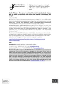 Media release – New portal provides information about climate change and the health of Aboriginal and Torres Strait Islander communities and people